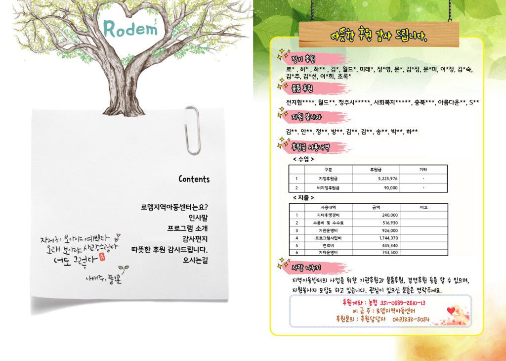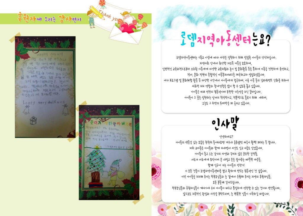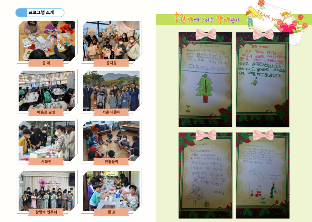 2022년 로뎀에서는 다채로운 일들이 많이 있었습니다. 꿈 지원 사업을 통해 로뎀 아이들은 미래 진로를 체험하고 꿈을 마음에 그려봅니다. 마을 단체 배움골행복교육공동체와 연계하여 이심전심 강심장 프로그램을 통해 심리 놀이와 전시회와 알뜰 장터등 운영 하기도 하였습니다. 그 어느때보다 풍부했던 동심을 담은 동시집 반짝반짝 피라미 보석도 발간 하였습니다. 그해 우리는 열정적이고 아름답고 뜨거웠던 한해를 보냈음이 분명합니다.